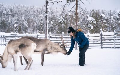 Uusi pienimuotoinen poro-ohjelma tarjoaa unohtumattoman elämyksen Sallassa – lyhyt poroajelu, porojen ruokinta ja kuumat mehut Tammakkolammen rannassa!